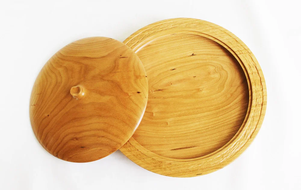 Derived from one of our fever dreams of design, this apple-shaped Black Walnut lidded bowl emerged as a creative solution to the desire for a lidded bowl with a handle but without having to apply a handle later. A unique twist on traditional design, the lid features an integrated handle in the shape of an apple, sparking inspiration for several variations of this popular piece. Due to its curvy shape, we felt it to be a bit of a “bubba” and the name has stuck to this day.